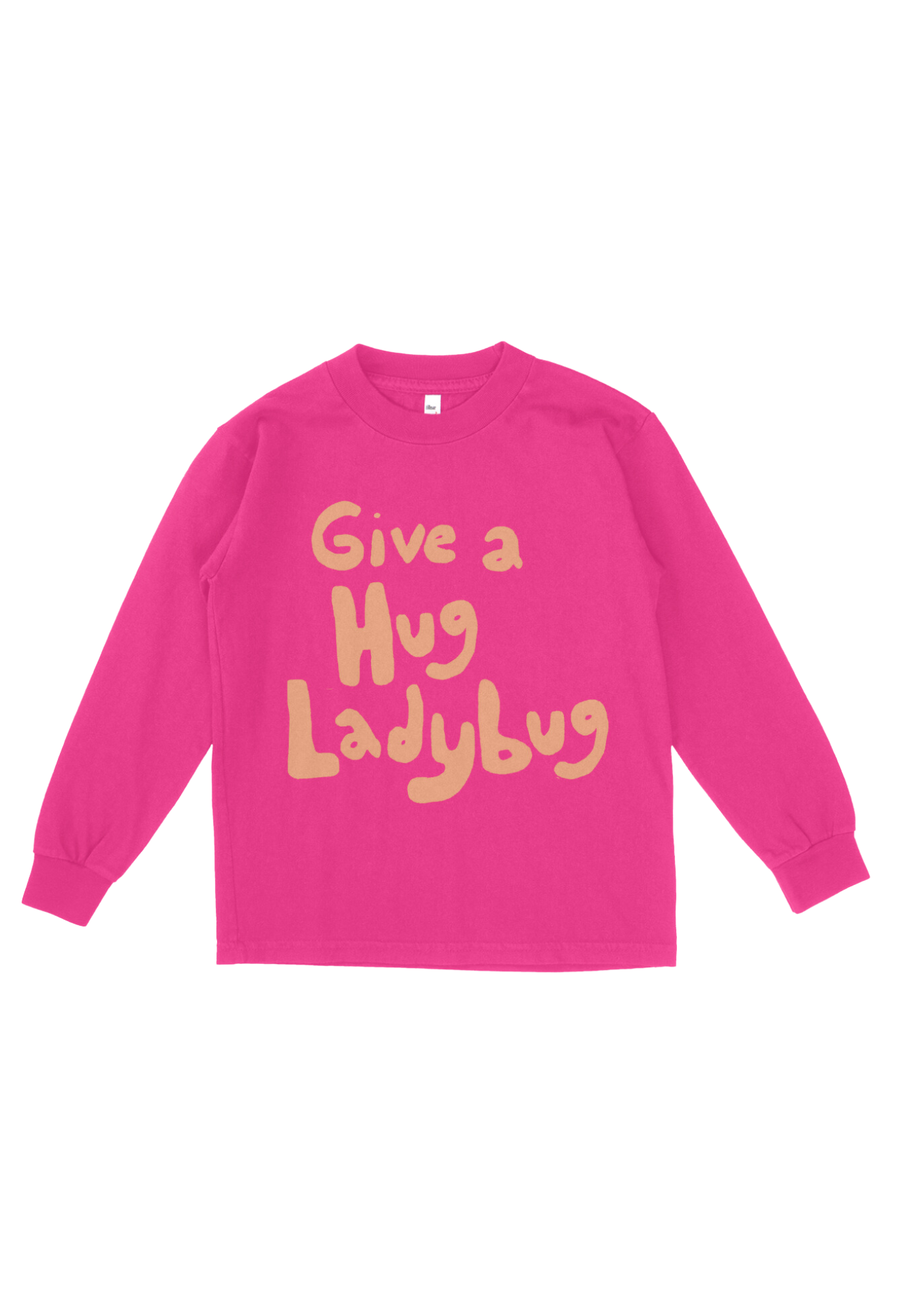 Give a hug ladybug! This adorable pink shirt features light orange bubble letters with a cute rhyme, and long sleeves just in time for winter fun!