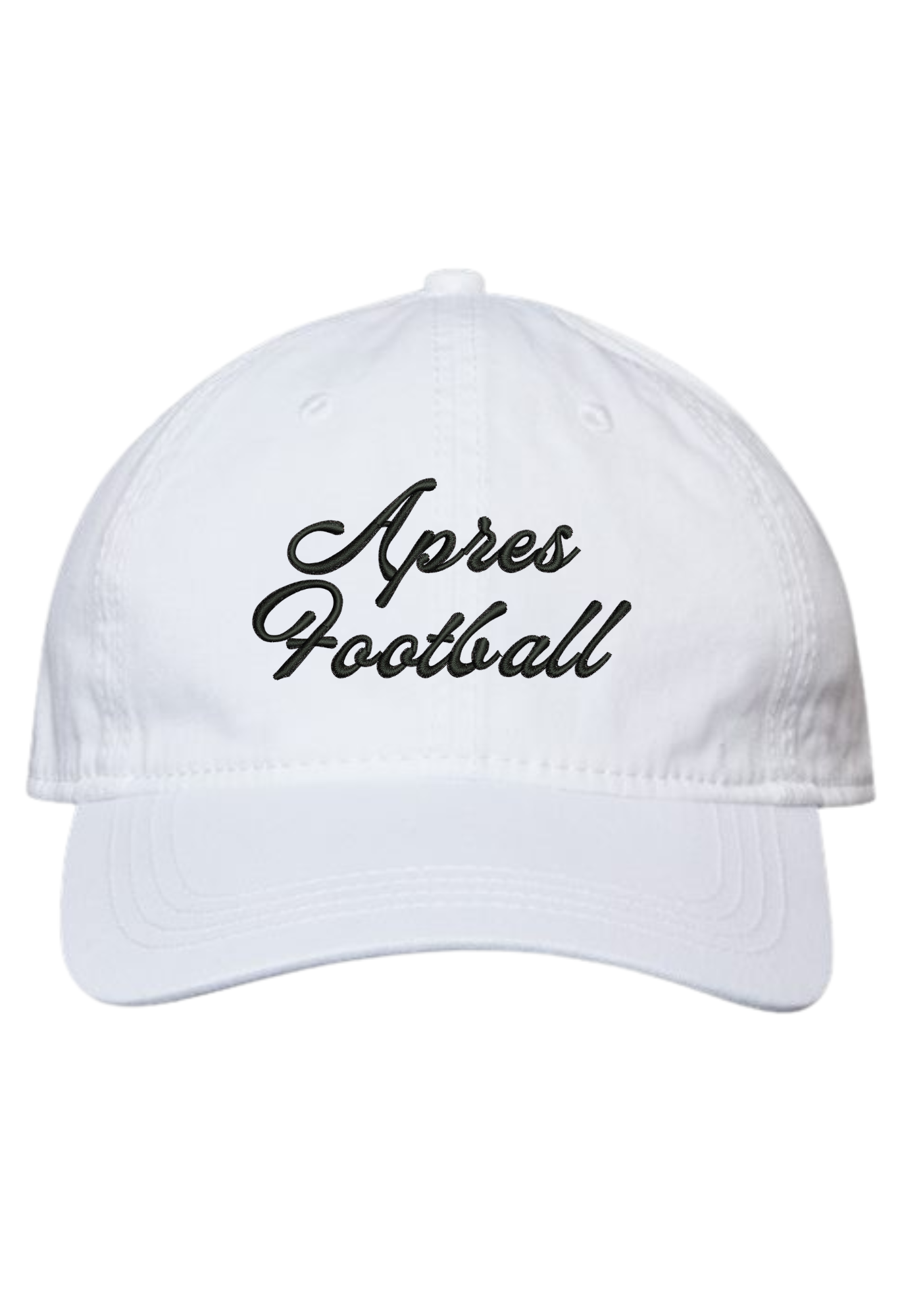 Your favorite team's good luck charm. 🏈 Stay game day ready. Aprés Football embroidered on a classic white dad hat.